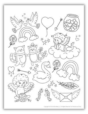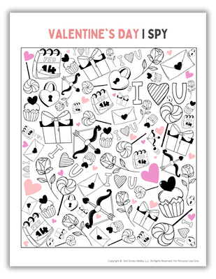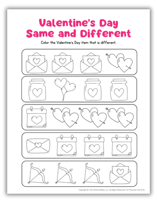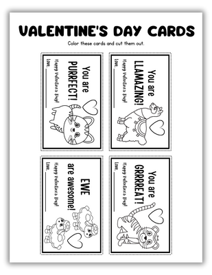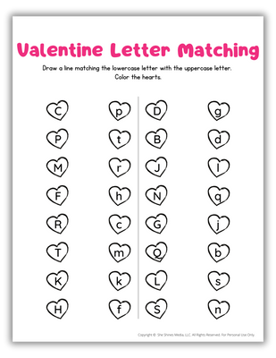 February includes 28 pages with a combination of coloring pages, activity worksheets, letter matching, printable games, scissor skills pages and Valentines cards!